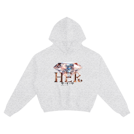HER All-Over Print Women's Zip Up Crop Hoodie