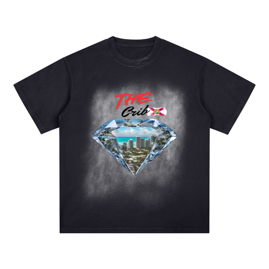 The Crib FL Square Patch Monkey Washed Drop Shoulder T-Shirt - 250 GSM