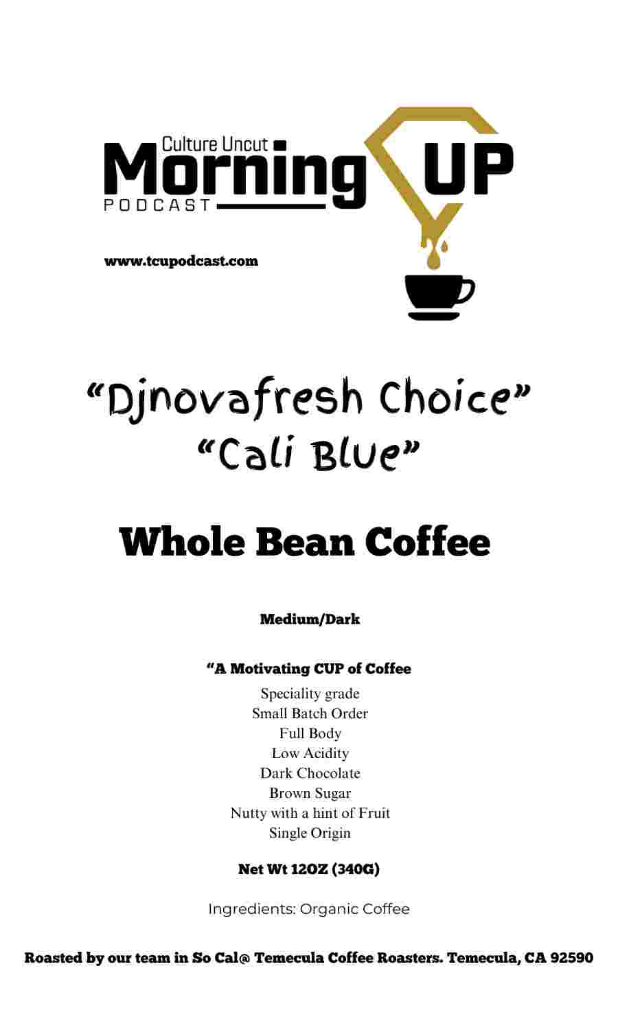 Introducing Djnovafresh's Choice of coffee, Cali Blue , the ultimate motivation in a cup, designed for the Morning Culture Uncut podcast crowd. Our coffee is roasted to order, ensuring every sip is as fresh as possible. Made from organic beans, Cali Blue is ground fresh and packed into a 1lb bag, ready to infuse your mornings with unparalleled energy and flavor.
