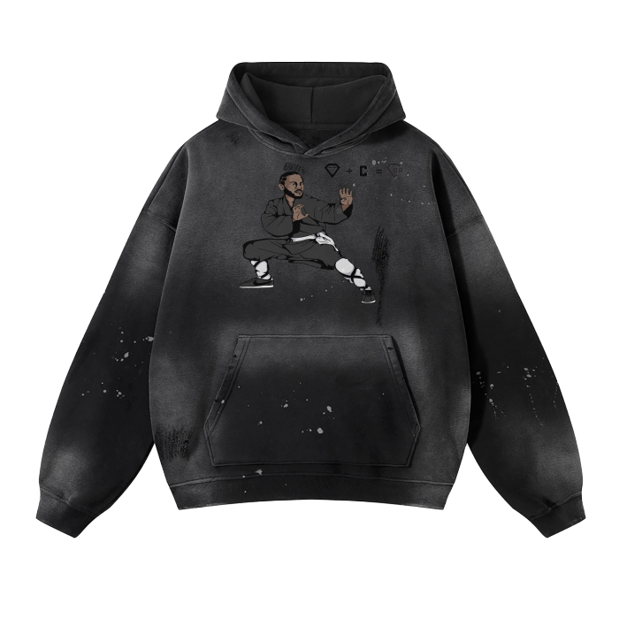 Vintage Wash Frayed Fleece Hoodie - 360 GSM